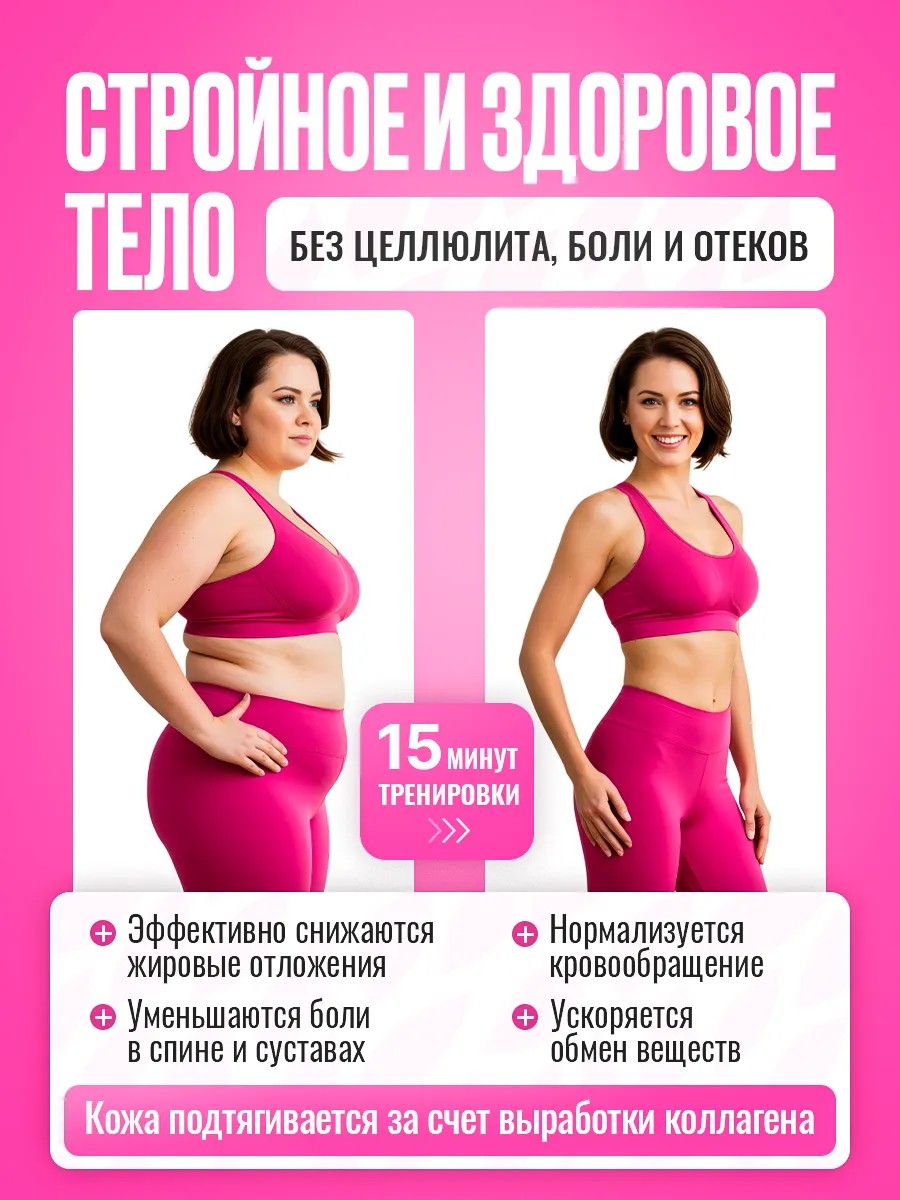 Это идеальное решение для тех, кто хочет оздоровить свое тело и подтянуть кожу. Фитнес тренажёр ускоряет сжигание жира. Поможет избавиться от лишнего веса и целлюлита, подтянуть кожу, сделать ее более эластичной, активировать процесс кровообращения и снять отеки.