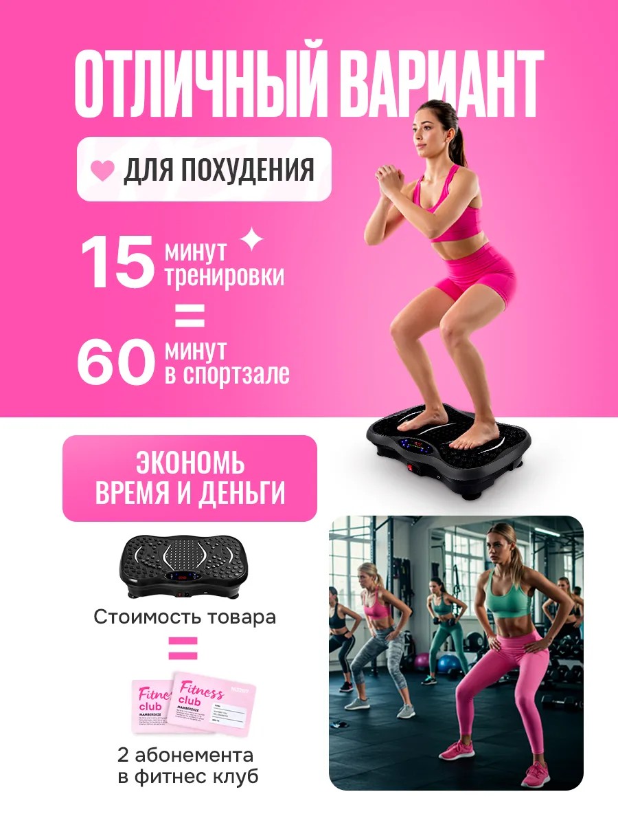 Всего 15 минут упражнений на вибротренажере равноценны 1 часу занятий в тренажёрном зале. Наш антицеллюлитный массажер работает на базе вибрационных колебаний и подходит для занятий дома.